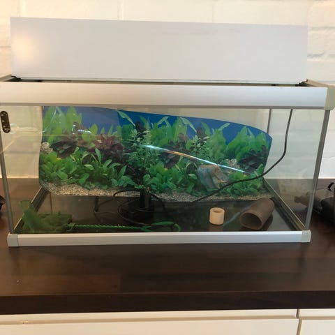 Akvarium 60 L med hvid top og bund med låg og indbygget lys