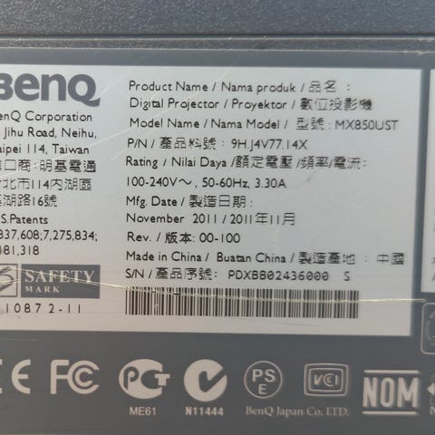 Digital projector m/beslag. Mrk Benq. Model: MX850UST.