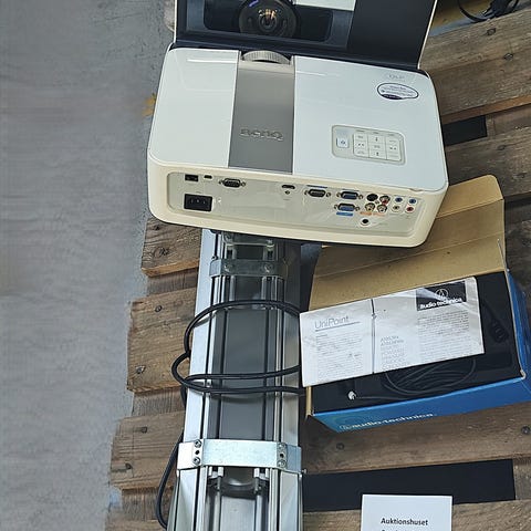 Digital projector m/beslag. Mrk Benq. Model: MX850UST. UniPoint fjernbetjent mikrofon. Model: AT853Rx (der medfølger det tilbehør, som ses i æsken). Brugte. MOMSFRI