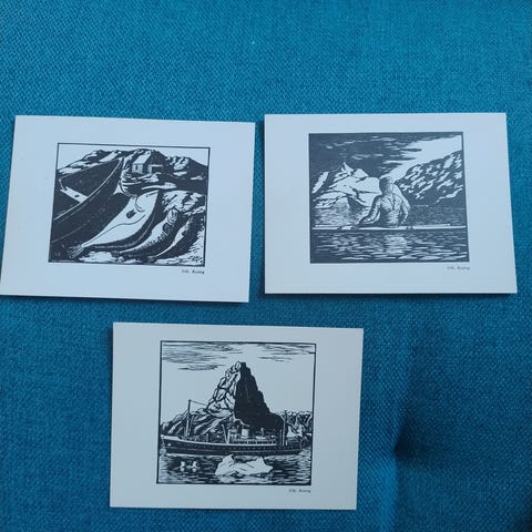Jeg sælger to fine kunst postkort. Af den anerkendte grønlandske kunstner Kâle Rosing.