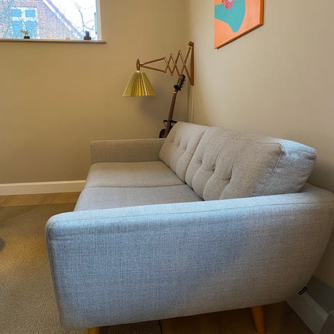 Dejlig 3 personers sofa fra Sofacompany, Vera, med puf sælges. Fra ikkeryger hjem uden dyr. Sofaen er brugt og har brugsspor men fungerer godt. Man sidder virkelig godt i den, og den er lang nok til, at man også kan sove i den. Betrækket kan tages af hynderne og vaskes.