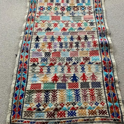 Lækkert tæppe i røde nuancer fra Marokko. Kan også bruges som vægtæppe. Mål: 150x100 cm.