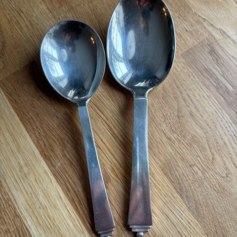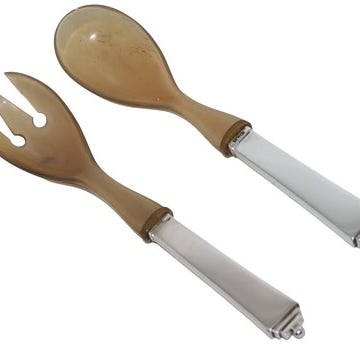 Georg Jensen Pyramide salatsæt i sterlingsølv og stål.