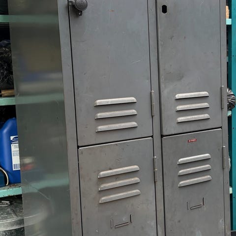 Skabet fremstår solidt og funktionelt med almindelige brugsspor svarende til alder. Perfekt til kontor, bryggers, entré eller opbevaringsrum.