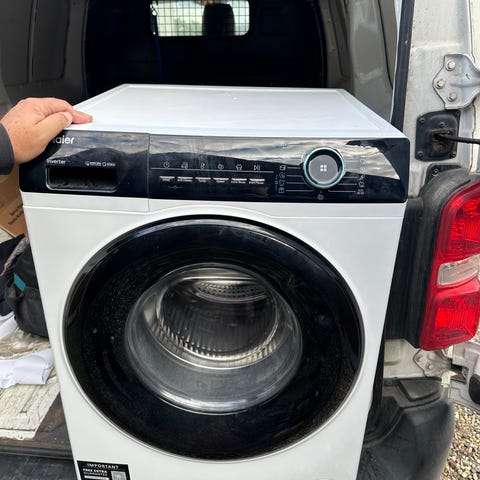 Haier frontbetjent vaskemaskine. Vaskemaskinen har frontbetjent låge og kontrolpanel placeret øverst på fronten. Egnet til almindelig tøjvask i husstande, hvor der ønskes en fritstående maskine med frontbetjening. Yderligere specifikationer som kapacitet, energiklasse og mål afhænger af den konkrete model.