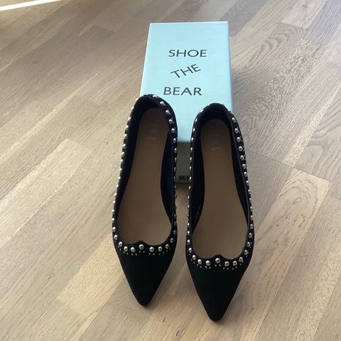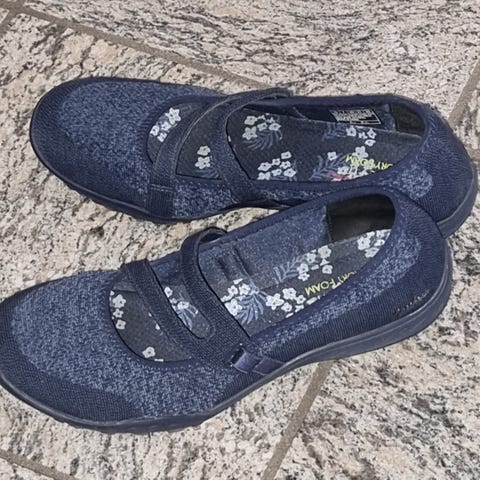 Skechers ballerina sko i størrelse 41 i sort. Modellen har indersål med Air-Cooled Memory Foam, som giver blød og formende støtte til foden. Overdelen er i tekstil med diskret mønster, og skoen har lav kilehæl og gummisål. Velegnet som hverdagssko eller arbejdstsko, hvor der ønskes en enkel og komfortabel ballerina i neutral farve.
