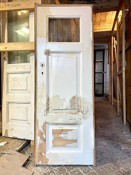 Klassisk, lille toiletdør m. rude og karm, B:61, H:185