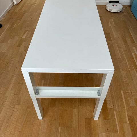 Der er enkelte pletter med malingrester på bordet, da min datter maler en del - kan renses