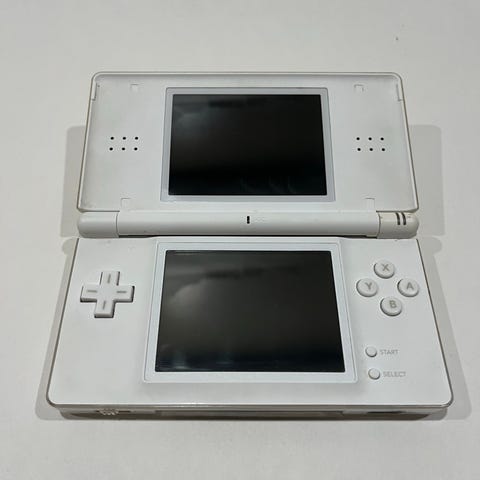Jeg sælger en Nintendo DS Lite i hvid. Konsollen har været brugt, og den hvide plastik er gulnet visse steder, men ellers fremstår den pæn.