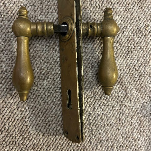 Til indendørs brug. Sættet består af to greb med tilhørende langskilte med nøglehul. Klassisk, drejet grebsform Passer til døre med traditionel nøglelåsekasse. Velegnet til renovering eller udskiftning af eksisterende dørgreb i lignende stil.