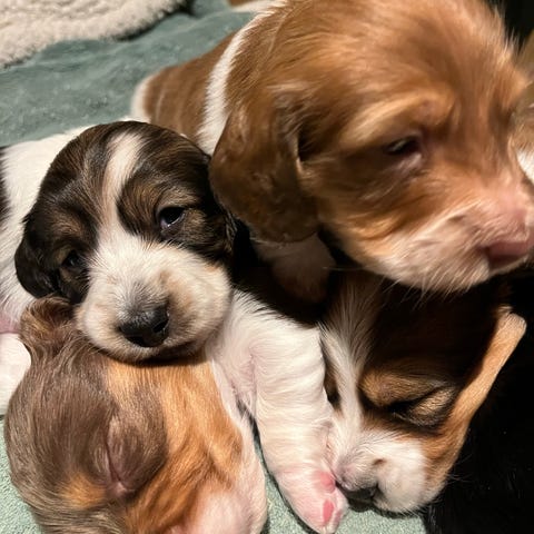 Efter de smukkeste og kærligste forældre. Hvalpene er vant til børn og andre hunde. De er renligheds trænet og vant til lyde i dagligdagen som radio, vaskemaskine, støvsuger osv.. de har prøvet at køre med i bil