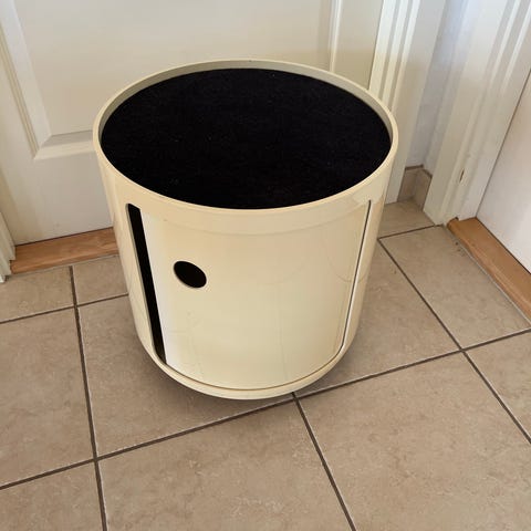 Kartell “Gastrone Trolley” foldbar serveringsvogn i hvid. Designet af Antonio Citterio. Vognen har to hylder i plast og stel med hjul, så den er let at flytte rundt. Den øverste hylde kan klappes sammen, så vognen fylder minimalt ved opbevaring. Velegnet som barvogn, serveringsbord eller ekstra afsætningsplads i stue, køkken eller spisestue.
