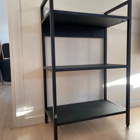 Sort hylde med knager under