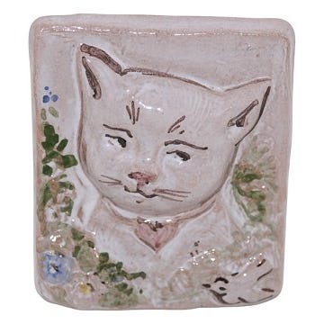 Doreen Middelboe keramik, lille firkantet plakette med en kat.