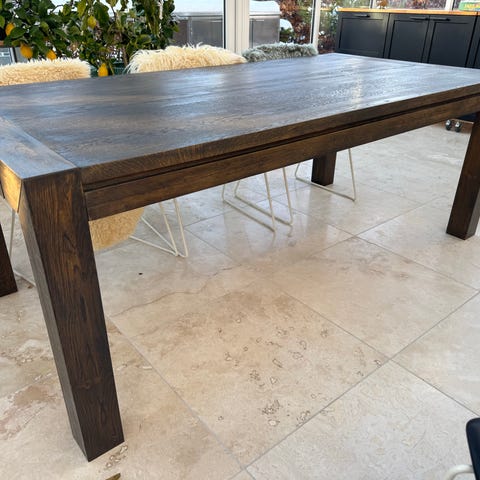 Lækkert spisebord i massivt egetræ.