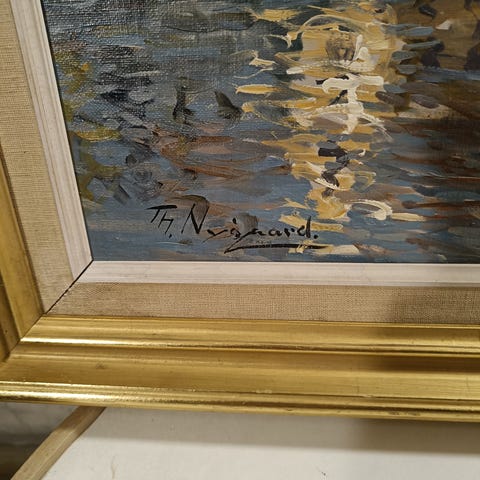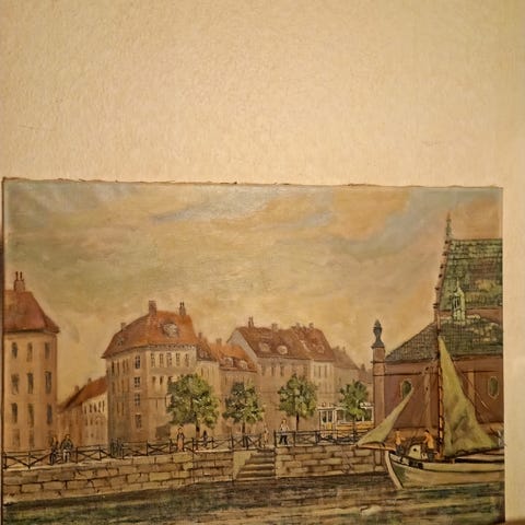 Oliemaleri / maleri af Einar Landberg af Christianshavns kanal på lærred, fint københavner motiv. B. 100cm x H. 73cm.