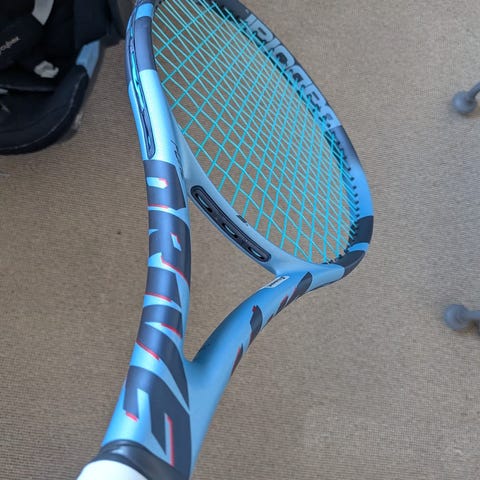 Brugt 2 gange helt som ny uden brugsspor og helt nye strenge fra luxilon med nyt Wilson overgreb