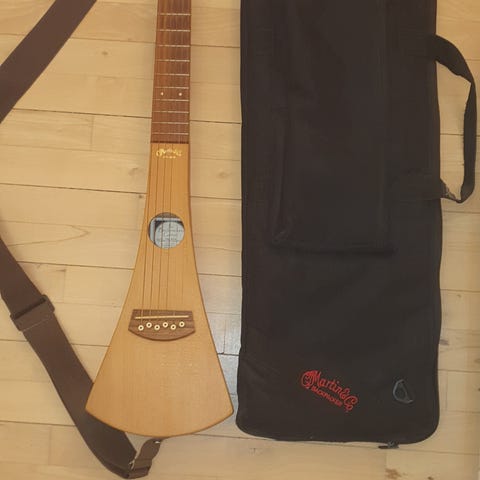 Rigtig fin rejseguitar – nem at have med rundt, i sommerhus eller som ekstra guitar derhjemme. Trods størrelsen har den en klar og behagelig lyd og holder stemningen fint.