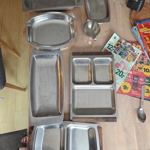 Flotte fade, super farve☺️ lille kaserole er i støbejern. gult fad er solgt