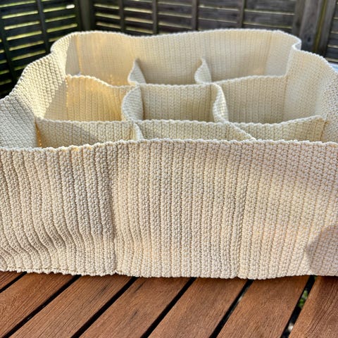 IKEA kurv til opbevaring i hvid. Kurven er fremstillet i et let materiale med perforerede sider, der giver ventilation og overblik over indholdet. Egnet til opbevaring i skabe, reoler eller garderober. Leveres med tilhørende hvide beslag/stænger, som kan bruges til montering eller udtræk afhængigt af system.