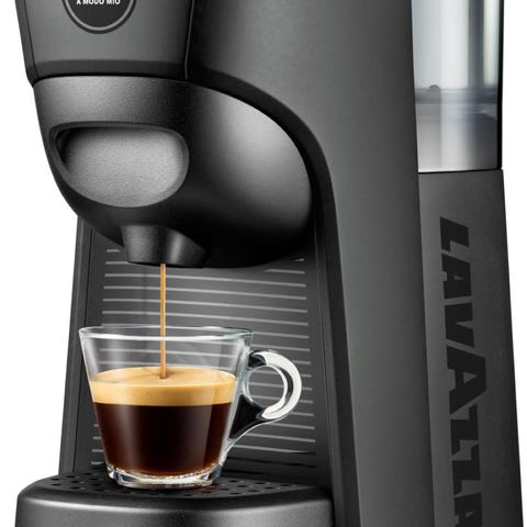 Smeg Lavazza A Modo Mio espressomaskine til kapsler i hvid. Lavazza A Modo Mio-kapsler med kompakt, lodret design. Maskinen har drypbakke og kopstøtte i forkromet metal samt to knapper på toppen til forskellige kaffemængder.