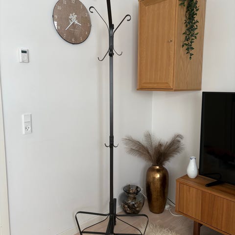 Simple and modern design, sturdy and stable. Perfect for jackets, bags, and hats in the hallway or bedroom. Takes up very little space but holds a lot. In great condition, no damage.