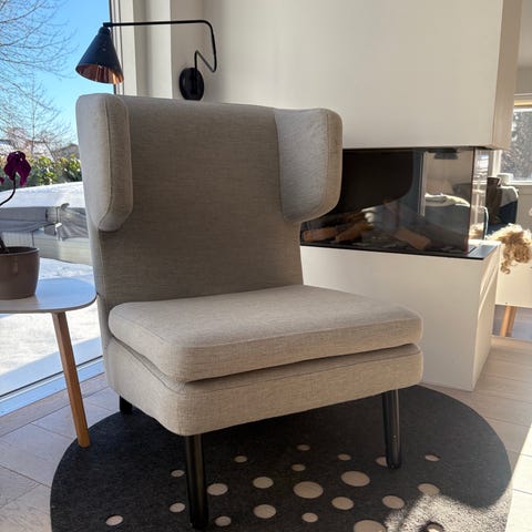 Bolia Loungestol med Fodskammel 🌸 mørkegrå stof og krom stel 🌸 pæn stand