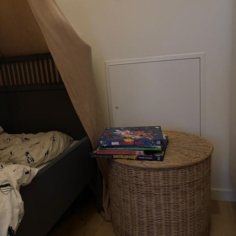 Fin kurv i brun kunstlæder fra IKEA med smarte håndtag i siderne for nem flytning. 🌸✨