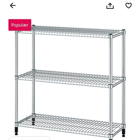 Omar reol i metal med 3 trådhylder. Åben konstruktion, velegnet til opbevaring både inde og ude, f.eks. i skur, bryggers, kælder eller på altan/terrasse. Stabil ramme med hylder i gitter.