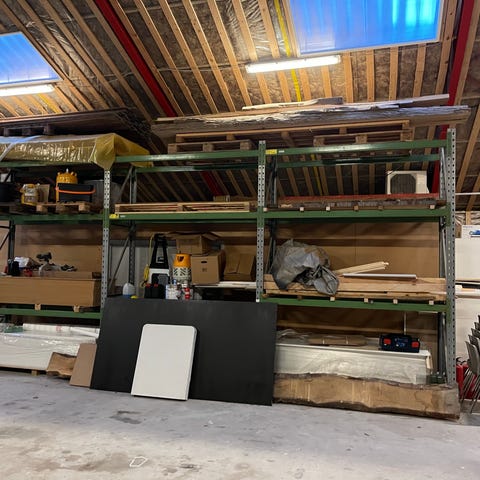 Stålreoler til Lager eller værksted. 15x1 meter i forskellige dybder. Nypris Kr. 15.000