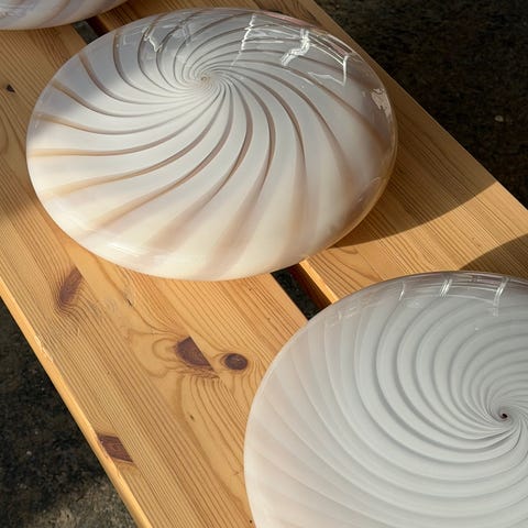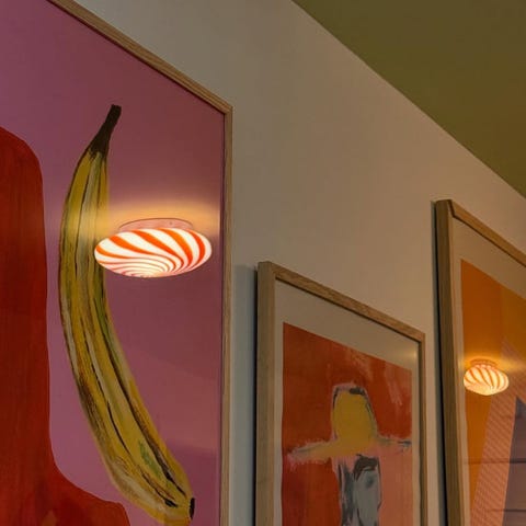 Plafond lamper kan monteres direkte på flade overflader og er ideelle til rum med lavt til loftet eller som væglampe. Montering af stofledning med afbryder og stik (kan herefter sættes direkte til stikkontakt) kan tilkøbes herSe alle Murano Candy lamper her