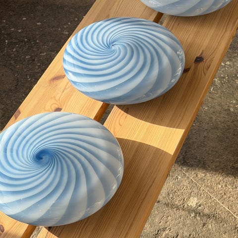 I og med det er mundblæst glas, vil udtrykket afvige fra glas til glas og der kan være små magiske bobler og andre unikke kendetegn. Nuancen kan variere alt efter hvilket lys den ses i.