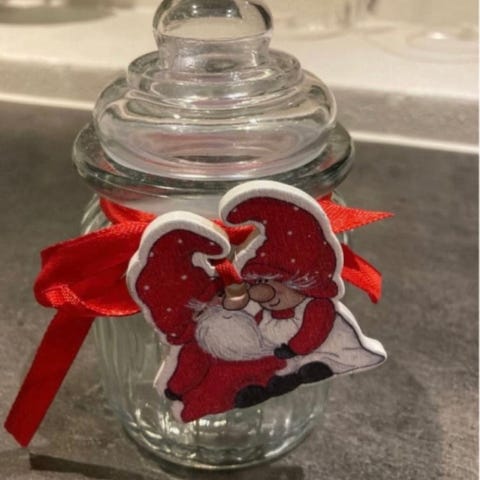 Jule glaskrukker, Den mindste er 13 cm høj. Pris 10 kr.