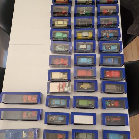 Tintin modelbiler 1:43. “Et Studie i sort”. To blå boks. Alle med certifikat