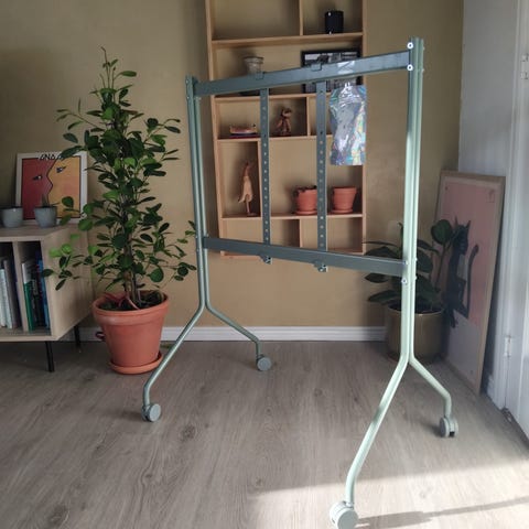 Nyt Pedestal TV-stativ model Straight Tall I farven snow med Plate Shelf hylde i sort.