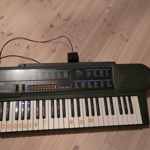 Jeg sælger dette fine keyboard for min onkel. Det er næsten ikke brugt og står derfor helt som nyt med emballage, manualer og nodeholder. Desværre er strømforsyningen bortkommet, men keyboardet kan køre på 6 x AA batterier, og eller kan en ny strømforsyning købes til små penge : fx her: