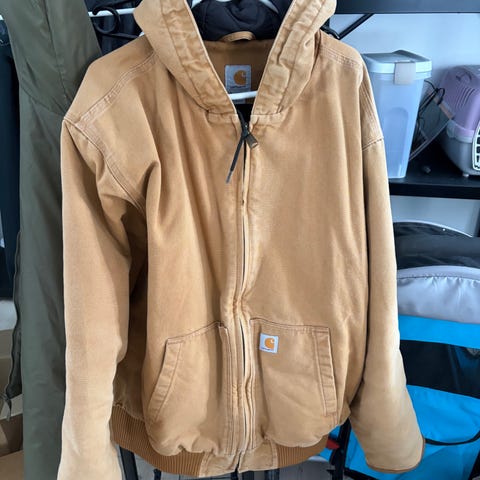 Mega fed Men Carhartt loose fit duck active jacket mørke brun i en small