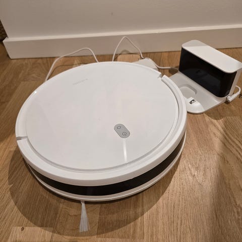 Xiaomi robotstøvsuger i hvid. Rund model med topbetjening og tilhørende ladestation. Velegnet til automatisk støvsugning af gulve i hjemmet. Passer til hårde gulve og tæpper afhængigt af modelens specifikationer. Strømforsynes via opladelig batteriløsning med dockingstation som base.fer medfølger af æt med ekstra mopper og børster. Med moppefunktion.