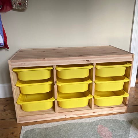 IKEA Trofast legetøjsopbevaring med plastkasser fyrretræ hvid