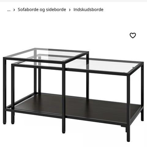 Sælger IKEA VITTSJÖ indskudsborde (sæt med 2) i sort metal og glas.
