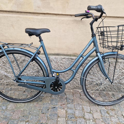 Total tip top nyistandsat, smurt, strammet og justeret kvalitetscykel fra øverste hylde, i super flot Racing-Green stand, med minimale brugsspor. En cykel der er blevet passet rigtig godt på. Alt virker 100 %, og cyklen kører og fungerer som fra fabrikken, uden mislyde, defekter, slør eller skavanker nogen steder. Kraftige punkterfri dæk, monteret på solide rustfrie stålfælge. Nye fastmonterede lygter, ny komfortabel blød og bred sadel med løftegreb, ny rummelig kurv, ny justerbar støttefod, nye ergo-håndtag og ny klokke. Indvendige Sturmey Archer gear. Sturmey Archer rullebremse for. Fuldt lukket kædeskærm. Højt og bredt styr. Håndbremse for og fodbremse bag. Køreklar og komplet med kurv, klokke, bagagebærer, støttefod, lygter, reflekser og fastmonteret ringlås med 2 nøgler. Yderst behagelig, rank, høj og flot kørestilling. Passer til høj som lav, og jeg indstiller styr og sadel så cyklen passer lige til dig. Obs 1, man skal trykke lidt hårdt på forbremsen, men bagbremsen virker optimalt. Obs 2, kædeskærmen har nogle få buler (zoom evt. på billederne). Str. 56 cm. 5 gear. Stelnr.: WN10407H. (Ved henvendelse angående cyklen, for hurtigere respons, sms eller ring venligst på 22 13 21 30, eller benyt messenger ved at trykke på "gå til varen" knappen).