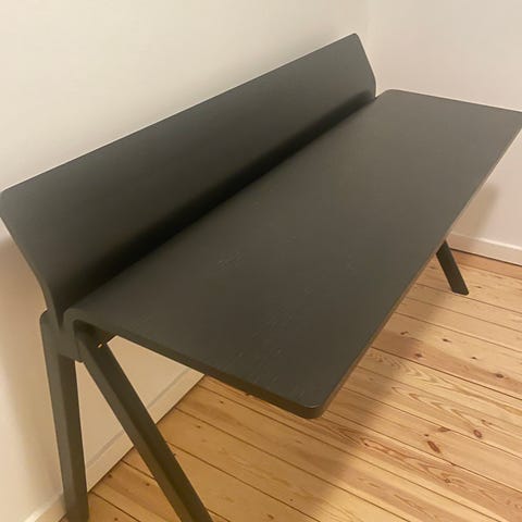 Sort bordplade, vinrød/bordeaux kant og ben.