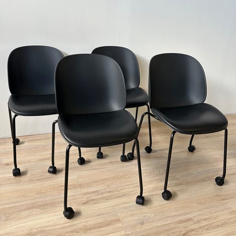 Fire hvide læderstol til spisebord. Er brugt og er købt i Gubi i 2005. Giv et bud.