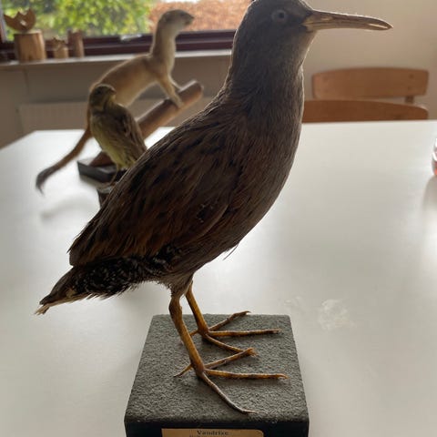 Udstopppet fugl på sokkel brun