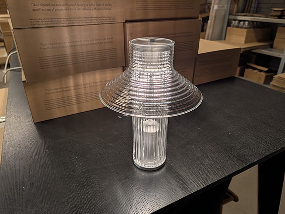 Hasmark-lampen består af mange fine linjer, som tilsammen danner en smuk form – meget ligesom et løg, som også er inspirationen for både designet og navnet. Tekstilet skaber et behageligt diffust lys, og lampen vil give en hyggelig atmosfære i ethvert rum. Ved at kombinere bløde tekstiler med den sorte metalramme opstår der et taktilt og kontrastfuldt design, og når lampen er tændt, vil den have et smukt detaljeret, grafisk udtryk. Lampen har fået sit navn efter en af Danmarks bedste løgproducenter, fynske Hasmark Vestergård.