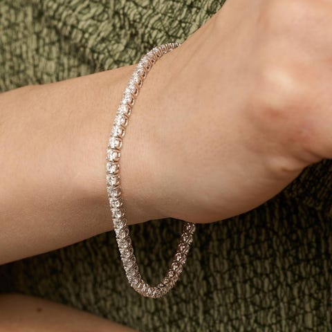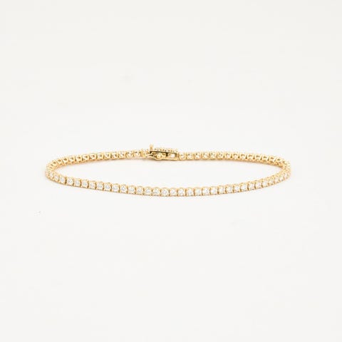 Kryds tennisarmbånd i 14K guld med flere røde sten, 18
