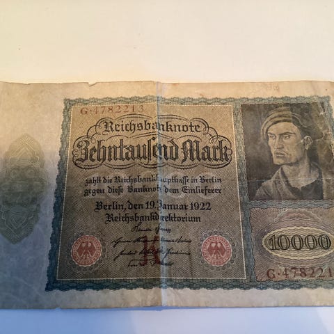 Tyskland 20000 Mark seddel. Sedlen har pålydende værdi 20000 Mark og teksten "Zwanzigtausend Mark". Forside og bagside har flerfarvet tryk med ornamentik og talangivelse 20000. Egnet som samlerobjekt for mønt- og seddelsamlere med interesse for tysk valuta og historiske pengesedler.