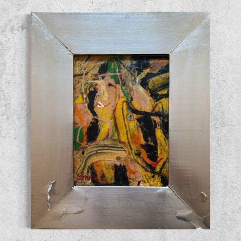 Stort flot olie maleri af anerkendt kunstner. Værket hedder 'Mozarts lillebror' og var galleristens egen personlige favorit. Under ½ pris af hvad tilsvarende sælges for i Galleri Knud Grothe og Galleri Uggerby. Vi har været vildt glade for værket, men har desværre ikke længere plads til det - det er et stort værk på 125 cm bredt og 155 cm i højden.