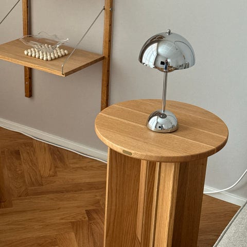 Unik Verner Panton bordlampe som er malet til et kunstværk.