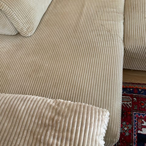 Super skøn flyder i fantastisk kvalitet. Aftageligt og vaskbart betræk på hele sofaen. Opdelt i tre moduler. Bredde og længe 295 cm. Dybde 100 cm - siddedybde 65 cm.